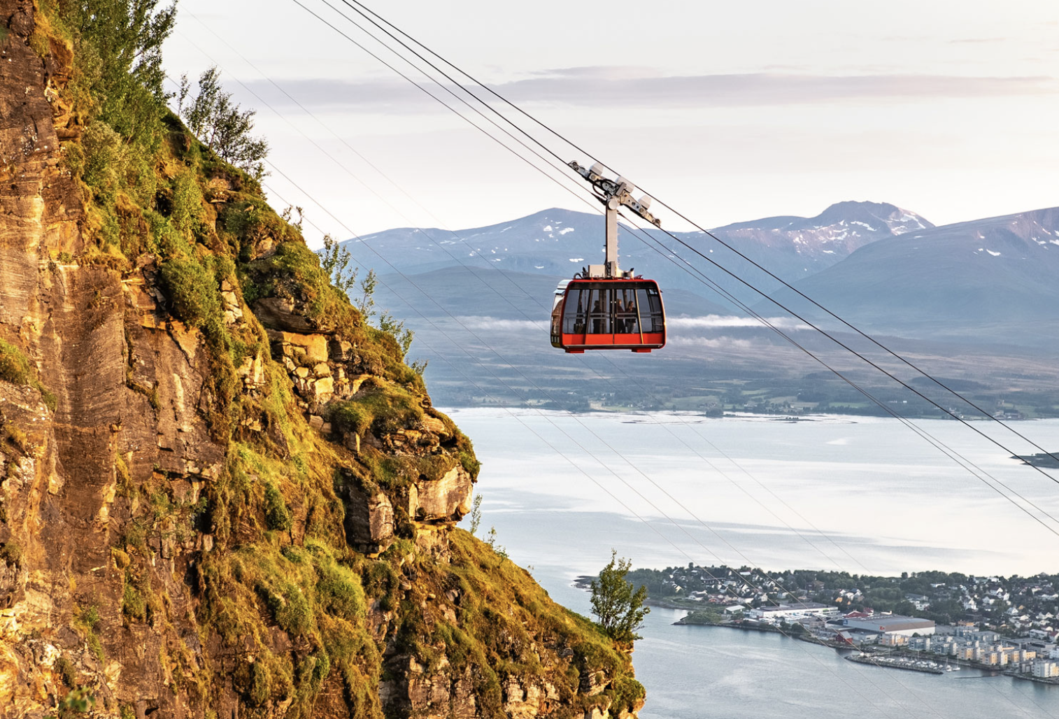 A trip up the Fjellheisen Cable Car is the perfect end to your day, offering panoramic views of Tromsø against a backdrop of dramatic, snow-capped mountains and clear, starlit skies.