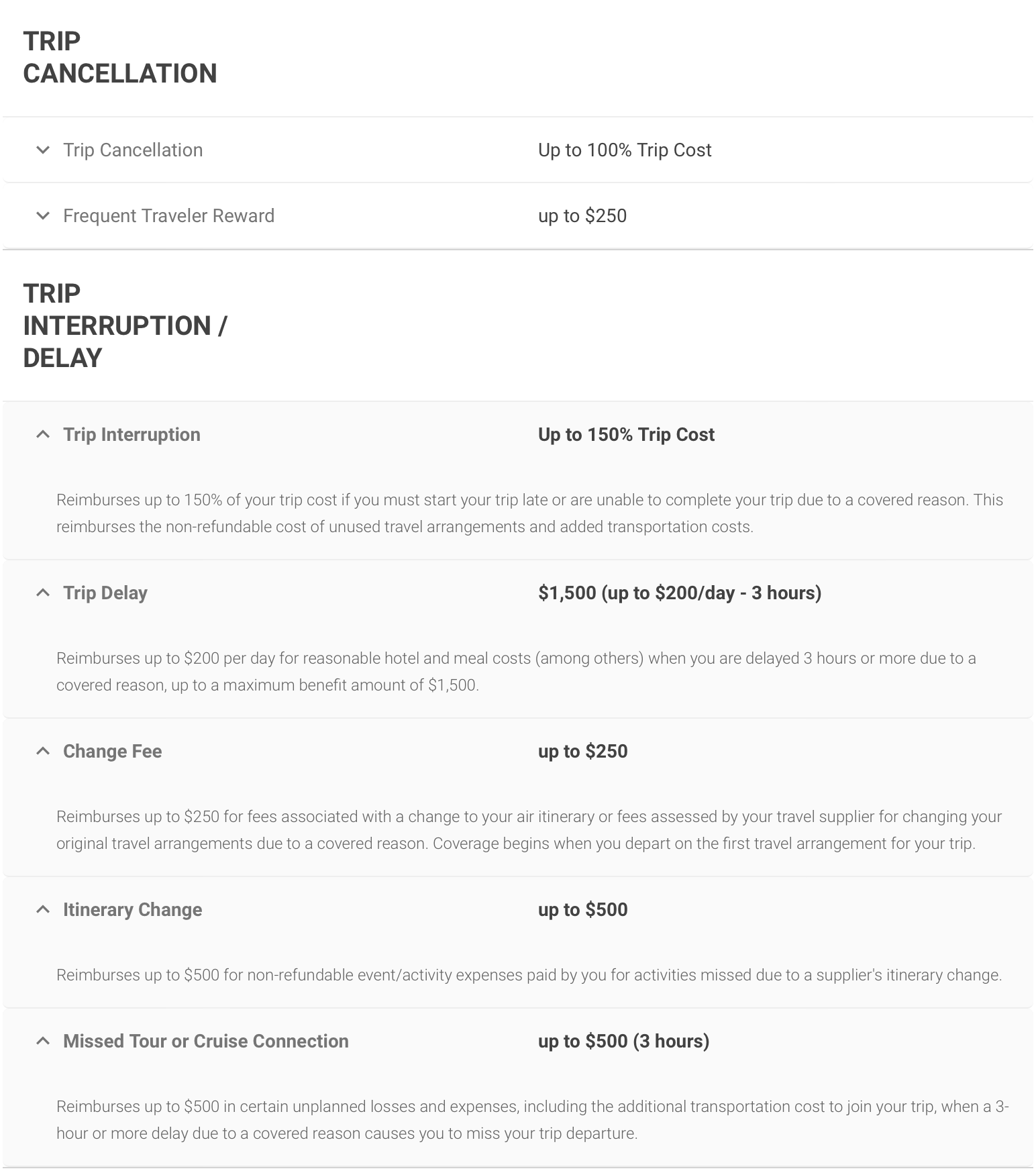 Trip Delay and Missed Tour or Cruise Connection coverage