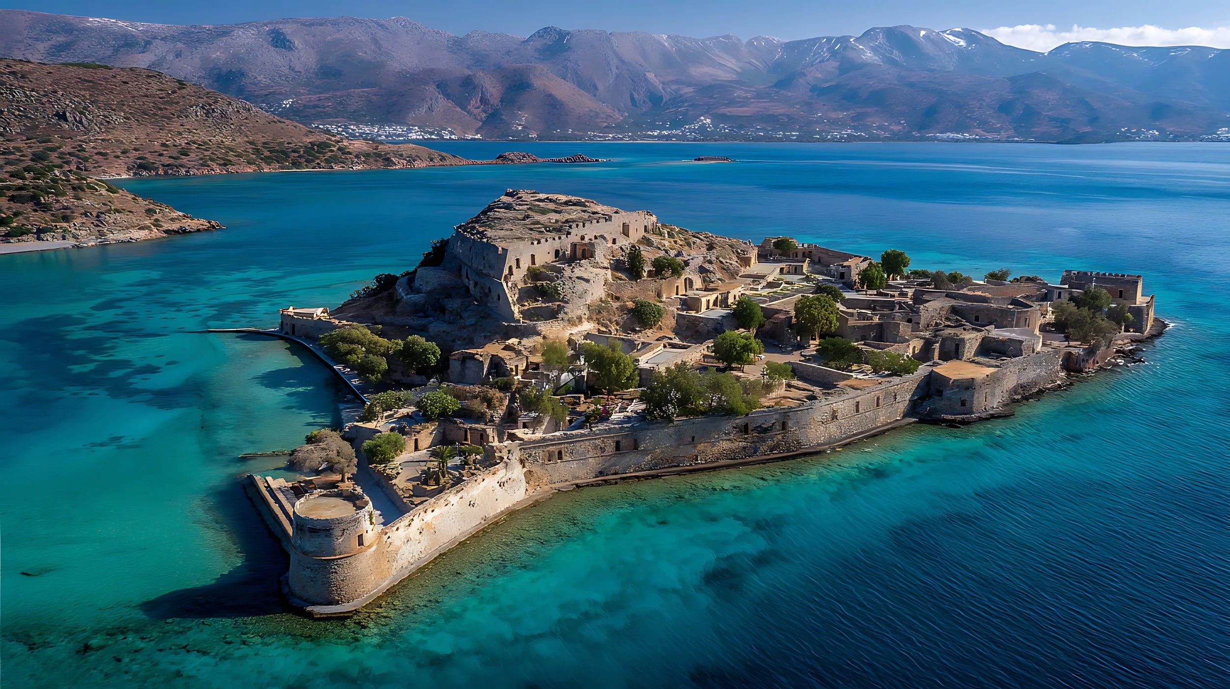 From there, board a boat to Spinalonga, a small island with a fascinating past. Explore its Venetian fortress, wander its atmospheric streets, and uncover its layered history, from its time as a strategic stronghold to its poignant role as a leper colony.