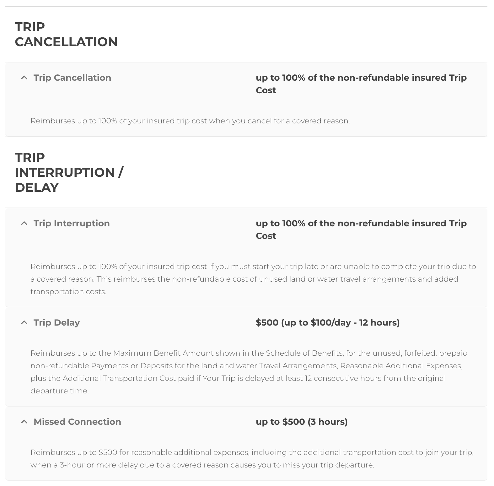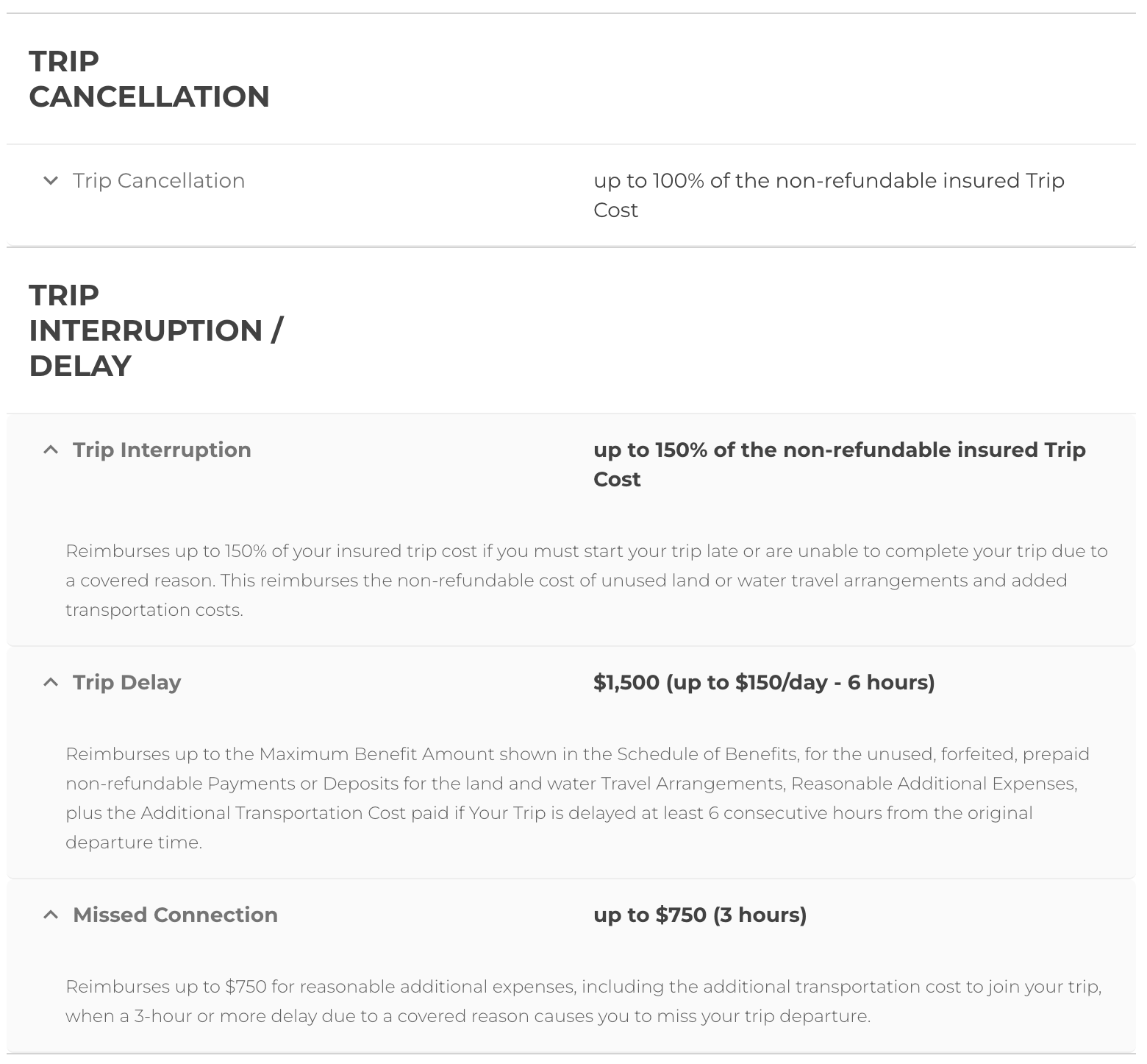 Pre-existing Medical Conditions coverage if purchased within 21 days of deposit (other eligibility conditions must also be met)